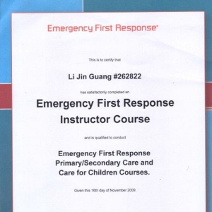 EFR国际救援紧急第一反应教练员 【2010年获得】